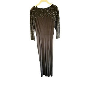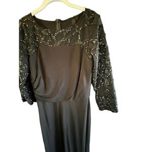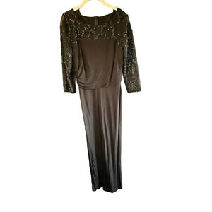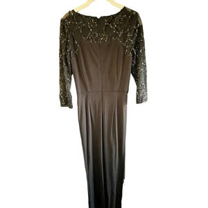 David Meister Women Black Long Sleeve Crew Neck Sequin Front Maxi Dress Size 6