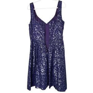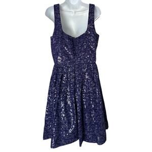 David Meister Sequin Purple Silk Mini Dress Women’s 12 Fit & Flare Signature