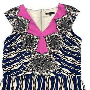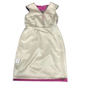 David Meister Sheath Dress Women's Size 12 Multi Geometric Cap Sleeve Back Zip