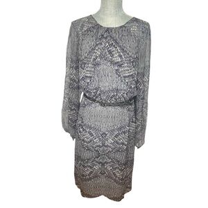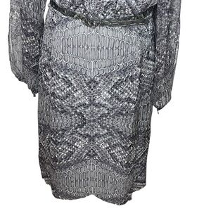 David Meister Silk Long Sleeve Knee Length Midi Dress Gray Snake Womens Size 12