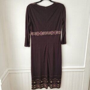 David Meister Tapestry Printed V-Neck 3/4 Sleeve Brown Midi Dress Women's 6