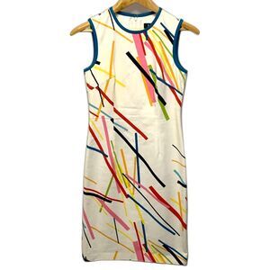 David Meister White Matchstick Print Cotton Sleeveless Sheath Dress Size 2