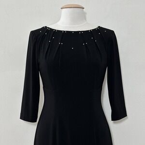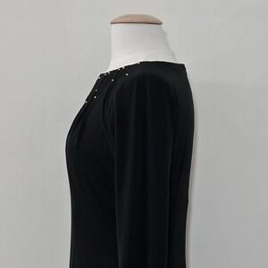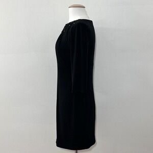 David Meister Women Dress 6 Black Jersey Knit Sheath Gold Studded Whimsigoth Y2K
