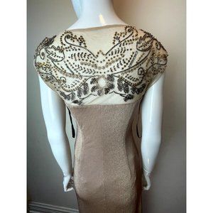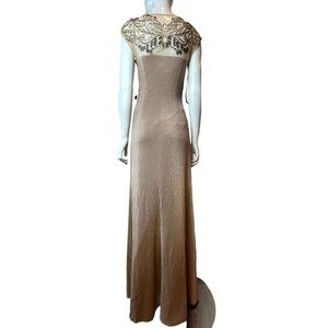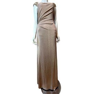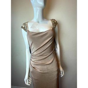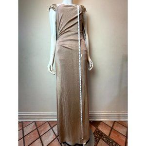 David Meister Women's Gown Evening Dress Long lined Beaded Ruched Tall Gold SZ 6