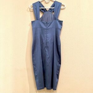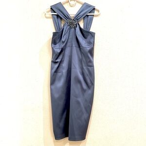 David Meister Y2K Steel Blue Sateen Beaded Appliqué Dress women’s size 6