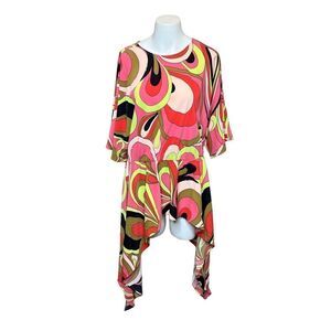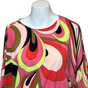 David Meister pink and green retro print drama tunic size M