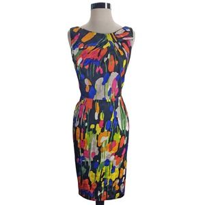David Meister vintage style 80"s pattern wiggle pencil dress. Has 2 stringy belt loops on sides, but no belt. H003
