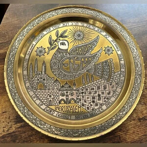 David Miro | Jerusalem with the Dove of Peace dHandmade. Jewish 13" Jerusalem Shalom Plate
