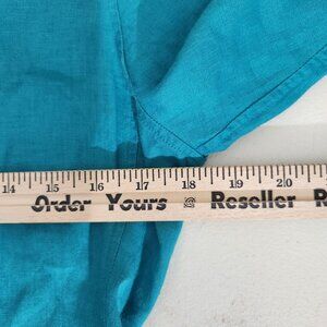 David N Top Womens Turquoise Linen Button Down Blouse Size Medium