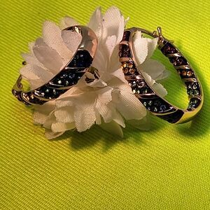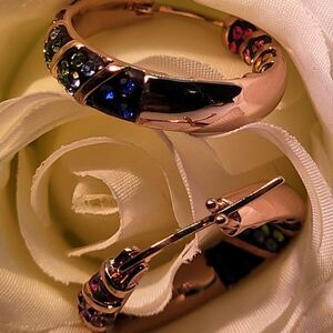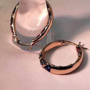 New, 18Kt Rosegold Austrian Inside Outside Hoop Earrings. Austrian Crystal is