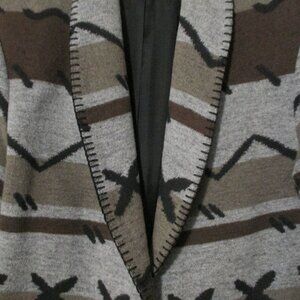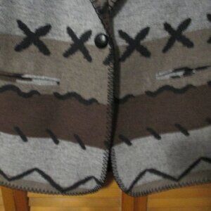 David Paul New York brand - Vintage jacket. Southwest Aztec look. Wonderful wool blend jacket. One front button and 2 front pockets. Colors are grays, brown, tan and black. Jacket has black top stitching for added detail. Jacket has sewed in shoulder pads and is lined. Great condition!
