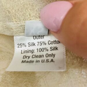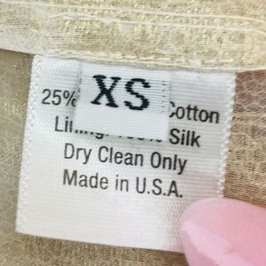 David Peck pale gold silk blend lined lace top. Full tee sleeves. Size XS