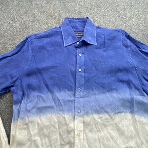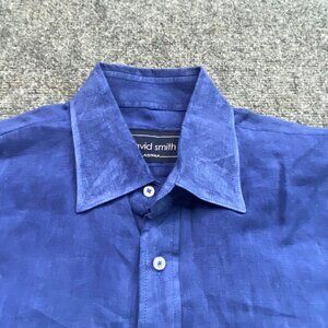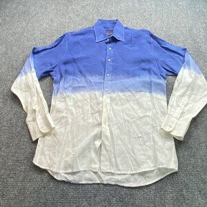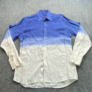 David Smith Australia Shirt Men's Medium Blue & White Ombre Linen Coastal Beach