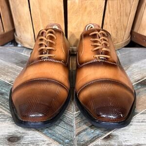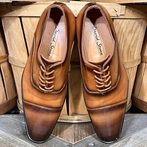 David Stone Burnished Tan Brown Faux Leather Cap Toe Oxfords Mens Size 8