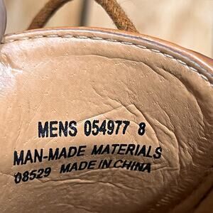 Previously loved in great condition, light signs of wear on the upper and soles with lots of life left. Faux tan brown leather upper, mens size 8