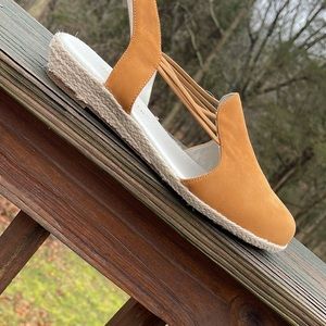 Classic espadrille , nubuck leather with upper elastic bands of the shoe for foot hugging fit