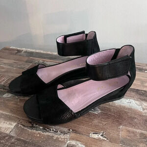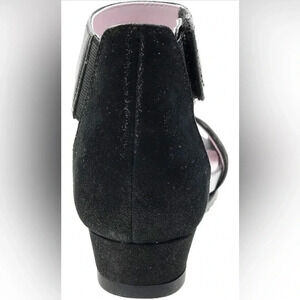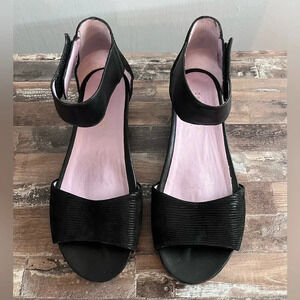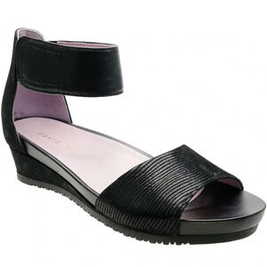 David Tate Black Low Wedge Velcro Strap Sandal Women Size 8