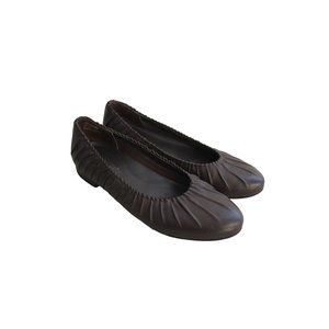 *David Tate Brown Leather Flats Pleated Slip-ons Signature Padded Insoles