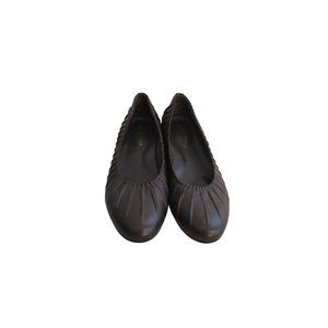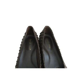 Stylish David Tate brown leather flats featuring pleated design and signature padded insoles for comfort. These slip-ons are perfect for casual wear and are size 8N.
