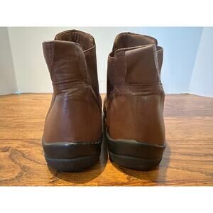 Step into timeless comfort with the David Tate Space Leather Chelsea Booties in rich brown, size 8W. Crafted from genuine leather, these ankle boots feature classic Chelsea elastic side panels for easy slip-on wear, a cushioned footbed for all-day comfort, and a versatile low heel. Perfect for everyday outfits, from jeans to dresses, they’re a stylish staple for any wardrobe. Gently used, good condition. Please see all photos for light signs of wear.