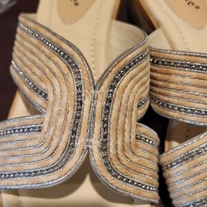 Benefits Charity! David Tate Thrill Women's Leather Sandal Bone Tan Slip On Slide Size 9 Wide Pre-owned