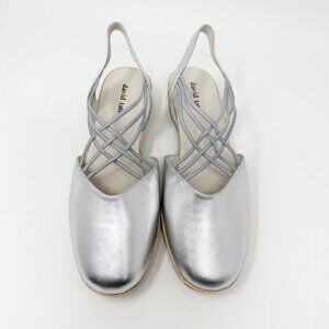 David Tate Womens Silver Leather Elastic Accent Slip on Flat Size 9.5 Wide