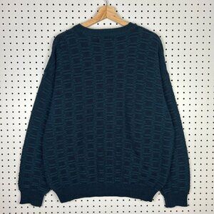 David Taylor Chunky Knit Sweater Size XL Navy Blue Grandpa 90s Chain Knit Cable