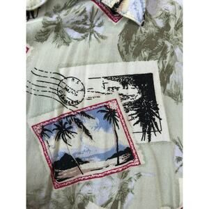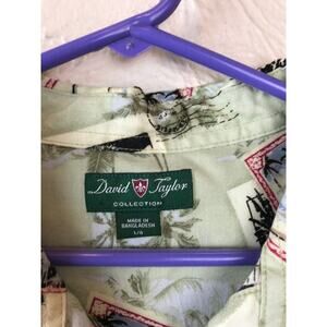 David Taylor Collection Mens Large Button Camp Palm Tree Stamp Postcard Shirt