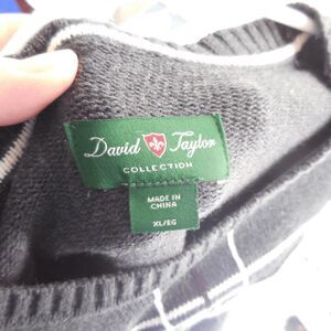 David Taylor Collection Size XL Gray Geometric Tic Tac Toe Front Sweater Cotton