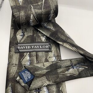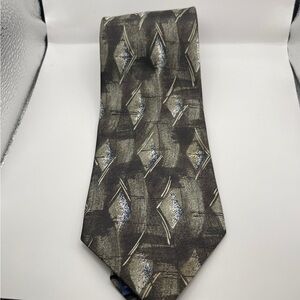 Stylish tie with geometric diamond design. Features black and silver tones. Ideal for formal events.