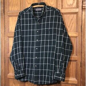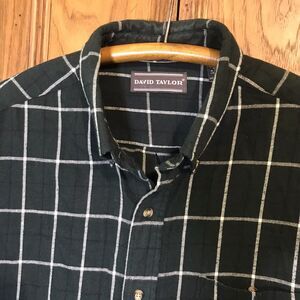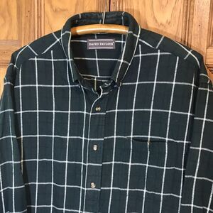 David Taylor Green Plaid Cotton Shirt Men's size XL Long Sleeve Button Down Top