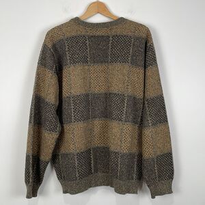Excellent condition. Brown chunky check design in browns. Mens size XL. Wide arm, crew neck. Nice heavy sweater.