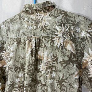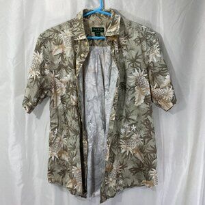 This classic Hawaiian shirt by David Taylor Collection offers a breezy, relaxed fit perfect for warm weather. Its beige and green tropical pineapple print evokes a laid-back island vibe, ideal for casual outings or vacations. Made with care in Indonesia, this shirt combines comfort and style with a button-up front and short sleeves.