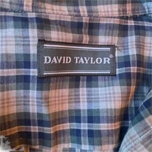 David Taylor Plaid Button Up Shirt Blue Green Long Sleeve Relaxed Workwear