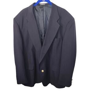 David Taylor men’s size 46L navy blue two gold button front lined padded shoulders cloth lined pockets rear vent sports coat, blazer
