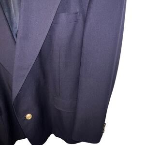 David Taylor men’s size 46L navy blue two gold button front lined padded Blazer