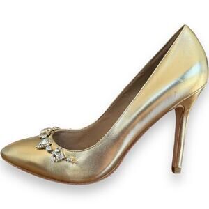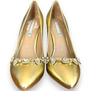 David Tutera Gold Rhinestone Embellished Wedding Formal Pointed Toe Heels 8.5