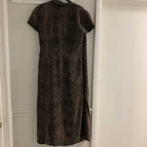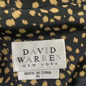 David Warner Womens Wrap Dress Size 8 Black/Tan Printed Silk Shoulder Pads