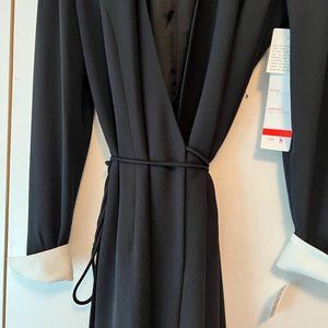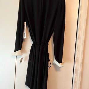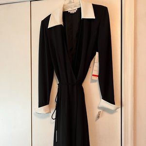 David Warren Black Wrap Dress w/Removable White Collar - 8