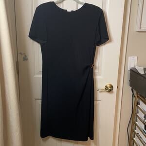 Little black dress bag zipper short sleeves sense side metal hardware shoulder pads slit in the back
