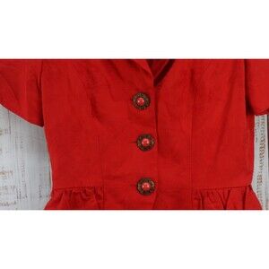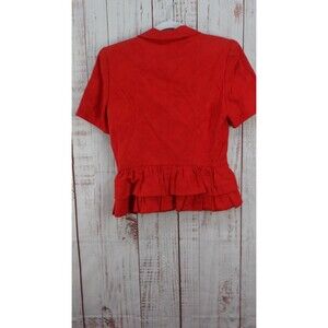 David Warren New york Blazer Womens 8 Red Button Up Ruffle Short Sleeve Vintage