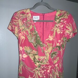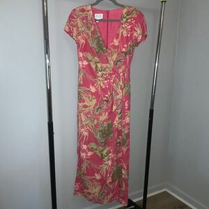 David Warren Side Tie Faux Wrap dress Sz 6 Tropical Floral vintage made in US