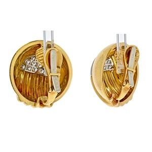 David Webb 18K Gold Platinum And Diamond Round Dome Articulated Clip Earrings