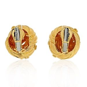 David Webb 18K Yellow Gold Knot Style Button Diamond Clip On Earrings