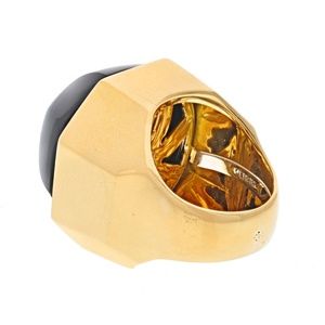Oversized black onyx dome ring by David Webb. Crafted in 18K yellow gold.