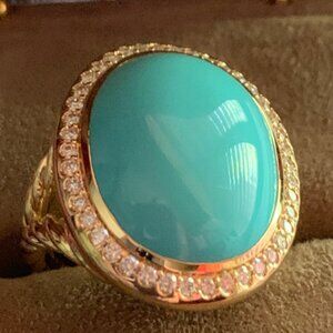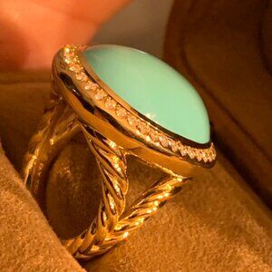 David YurmAlbion® Oval Ring in 18K Yellow Gold with Turquoise and Diamonds