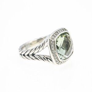 David Yurman 11mm Albion Sterling Silver 925 Prasiolite & Diamond Ring Size 6
