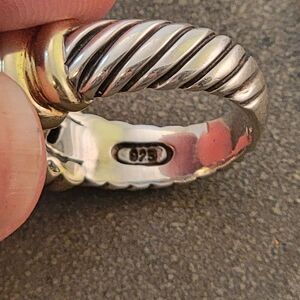 Authentic David Yurman sterling silver (925) and 14k (585) yellow gold ribbed cigar band ring.