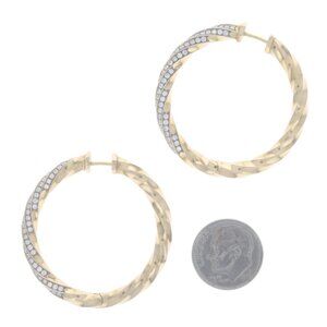 David Yurman 1.5in Cable Edge Diamond Hoop Earrings Yellow Gold 18k Rd 1.84ctw