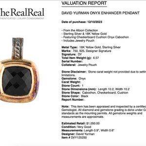 Incredible enhancer pendant by David Yurman -- a bold but elegant statement piece that is rare to find now! Can be worn with any DY chain or a different chain. Due to the signature two-tone construction, it could be worn with either gold or silver. It would make a great gift for someone who likes DY and wants to mix and match pendants, or would elevate a new year's outfit.